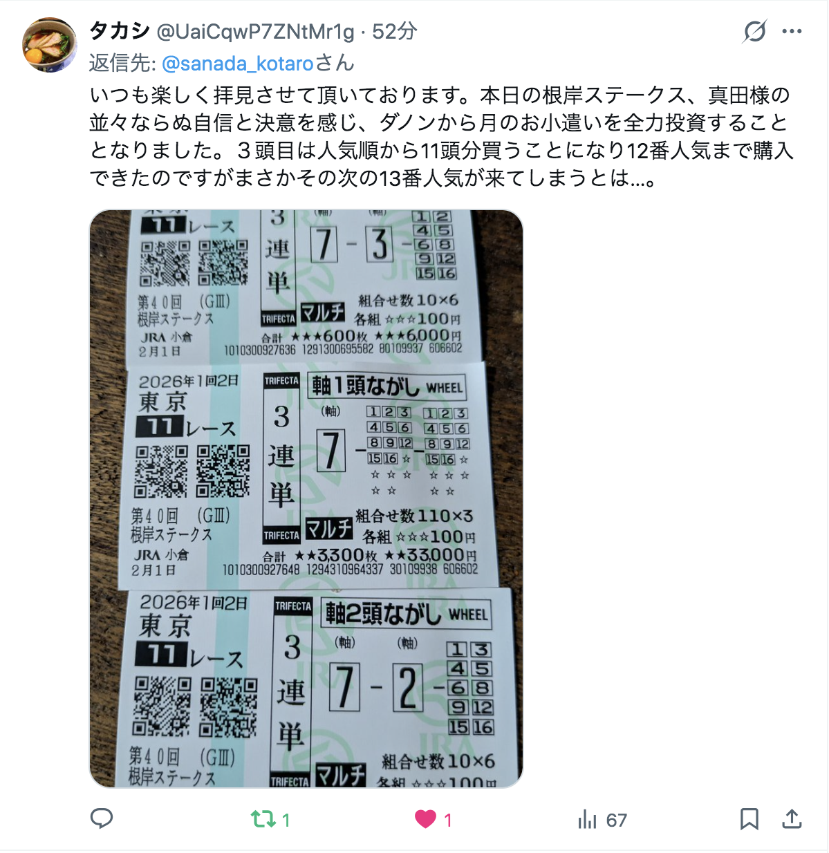 真田幸太郎の「考え方」というのを、実際の買い目を通じて感じていただけたらと思います。