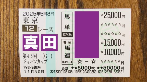 私はカッコよく、アーモンドアイの単勝1点100万円の有馬記念だと思っていましたが・・・
