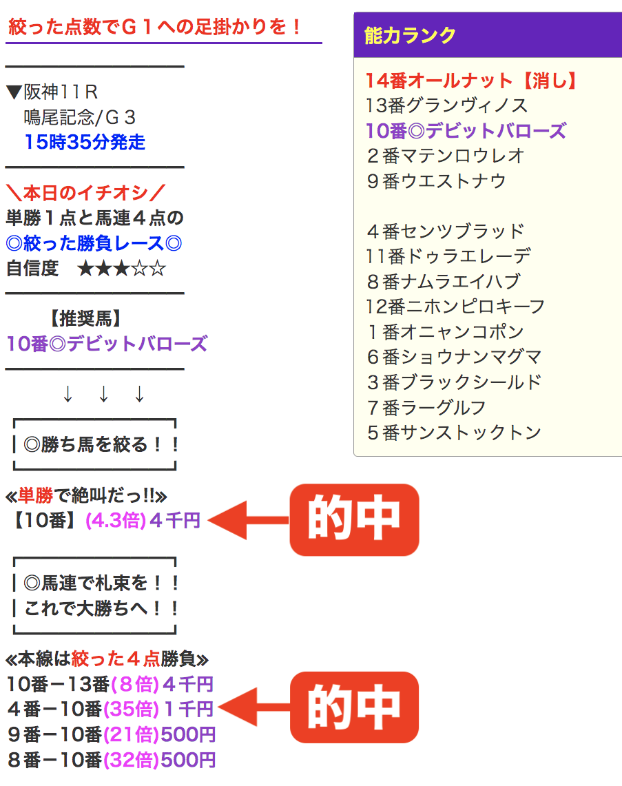 この無料予想のコラムでは、真田幸太郎が「有料ページ」で実際に公開しているのと全く同じ予想を「体験版」として公開しているコラムになります。