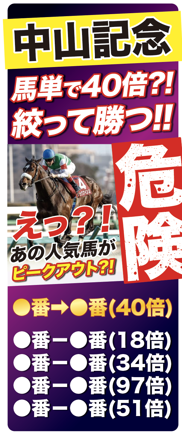 実はこのレース、G1馬も始動戦に選んで来るほど格式の高いレースだが、時と場合によっては1人気がぶっ飛び!