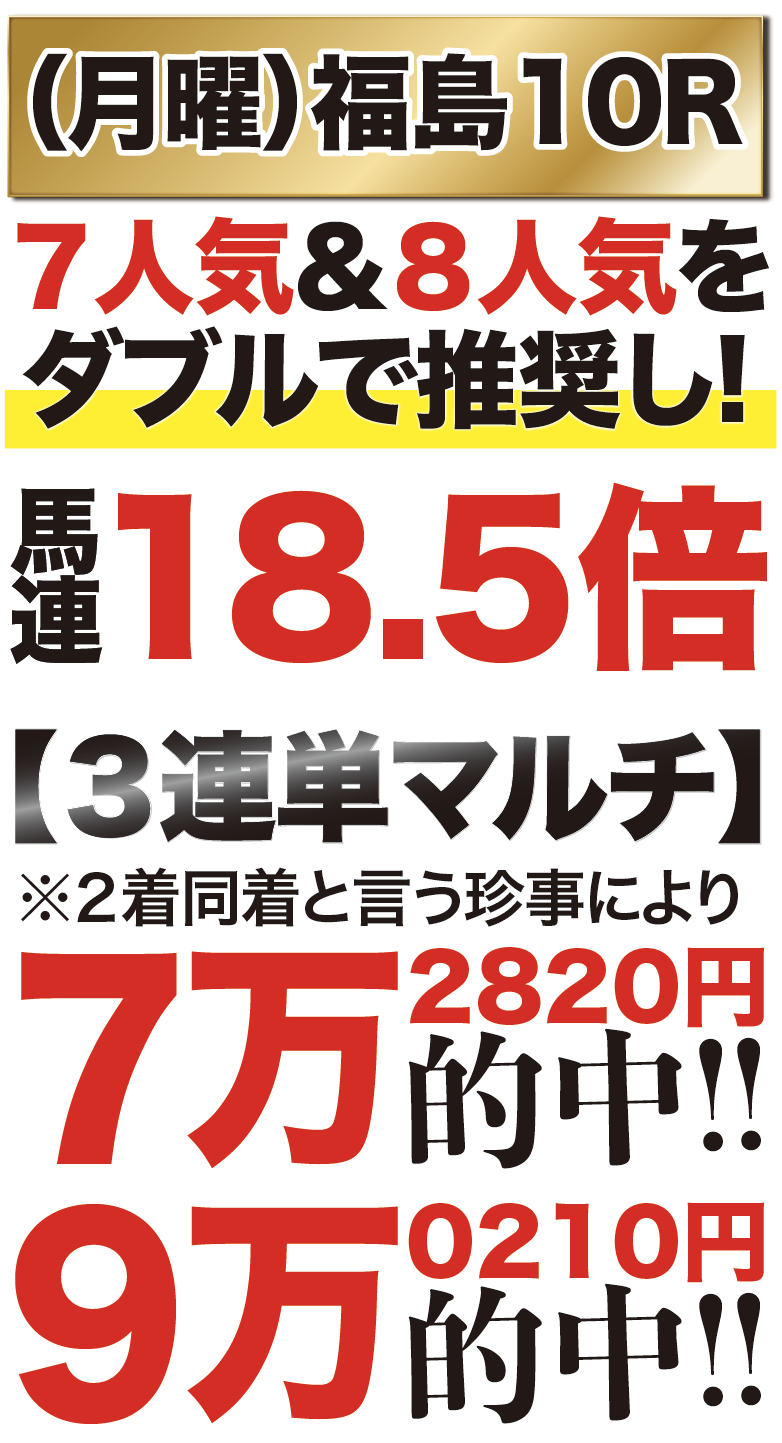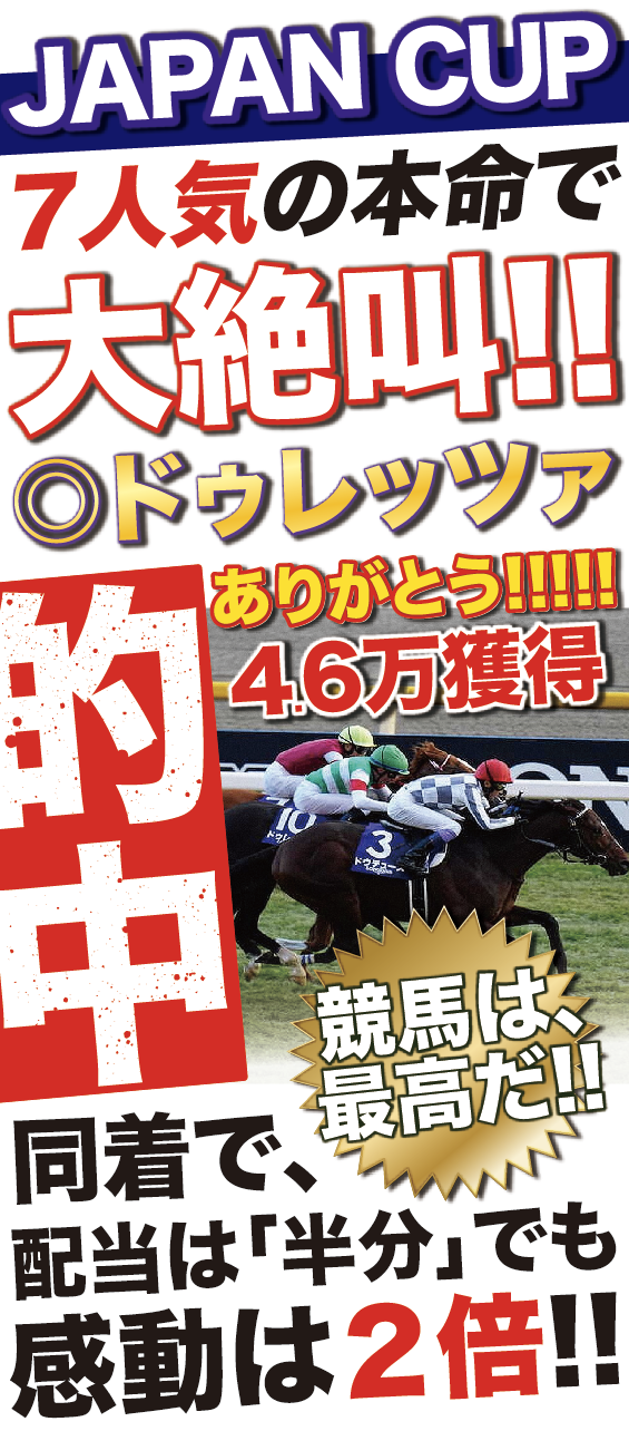 ※勝負レースではございませんので、1点あたりの【資金配分】に関しましては、お客様のご予算内にて、ご自由に選択ください。