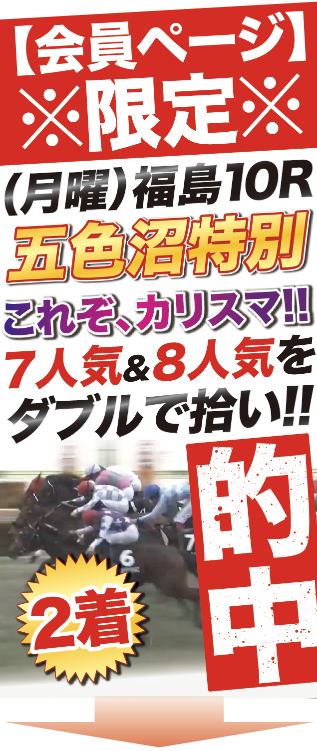 「勝負レース」&「最終レース」という、競馬予想にとって重要なこの2種類に関しては、全て有料ページでのみ限定公開しておりますが