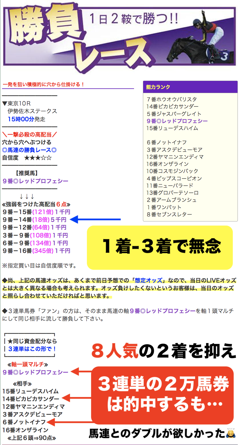 【無念】土曜日の勝負レース(東京10R)で3連単2万馬券を引っ掛けるも・・・!馬連とのダブル的中とはならず🙇♂️秋華賞での無念は、菊花賞3連覇で晴らす!