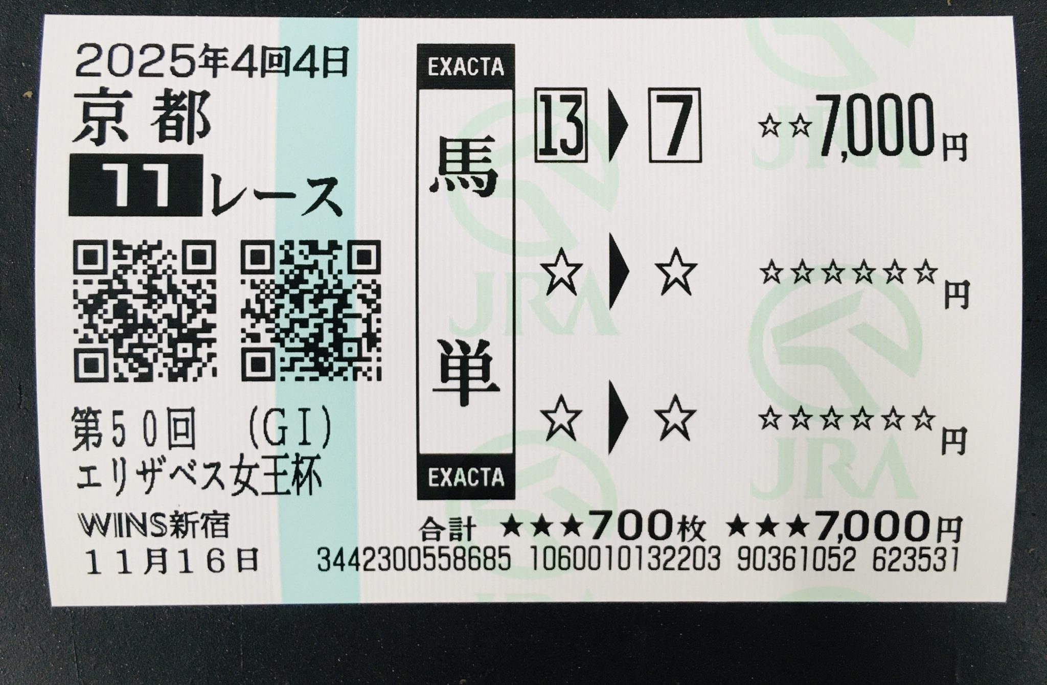 【先週】土曜の京都最終レースで巻き返した軍資金をG1へぶつけるも・・・!無念の5着→1着→2着→3着に。本当に申し訳ない!