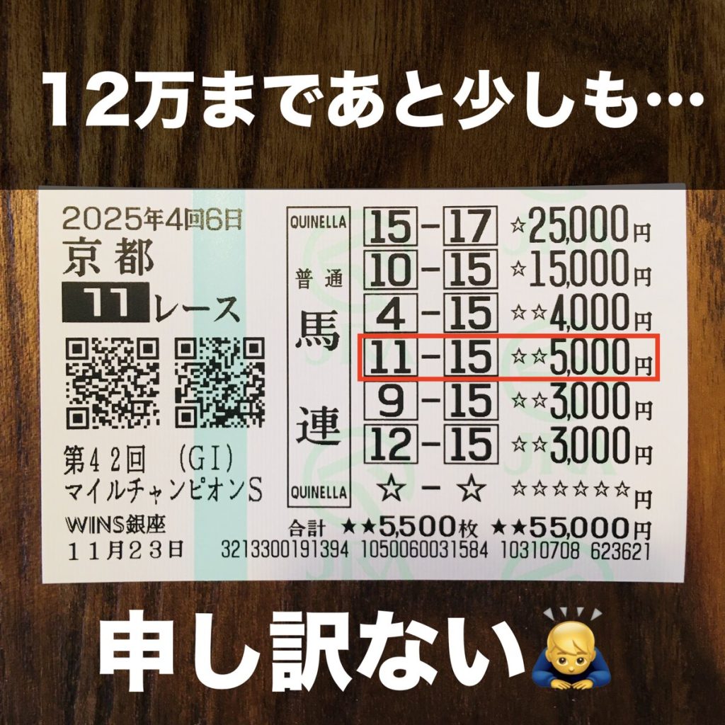 【無念】G1マイルCSは「ハナ差+クビ差」で馬連12万円を逃す!結果は結果で塗り替えるしかない!ジャパンカップで連覇だ!