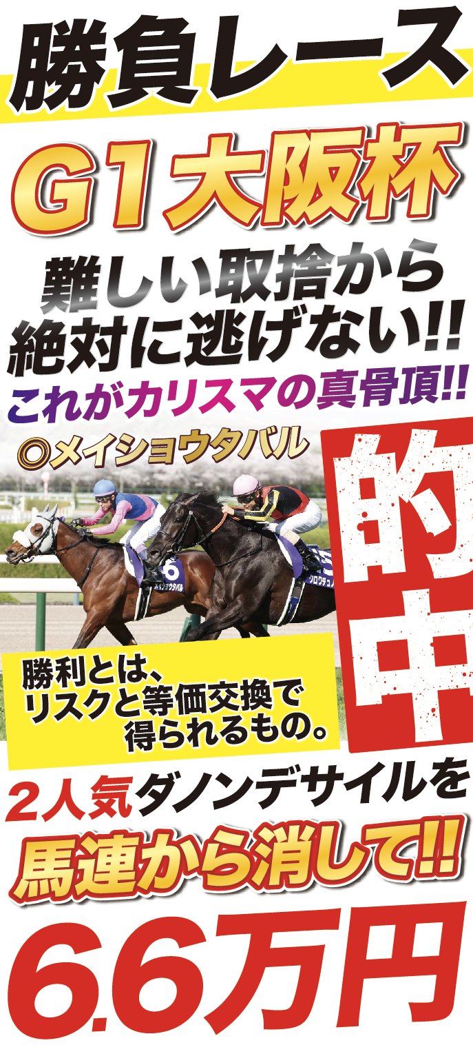 【🎯速報!!】→有言実行のG1的中!大阪杯で歓喜の2連覇!人気対決でダノンデサイルを馬連から消して→【馬連6万円】をGET!