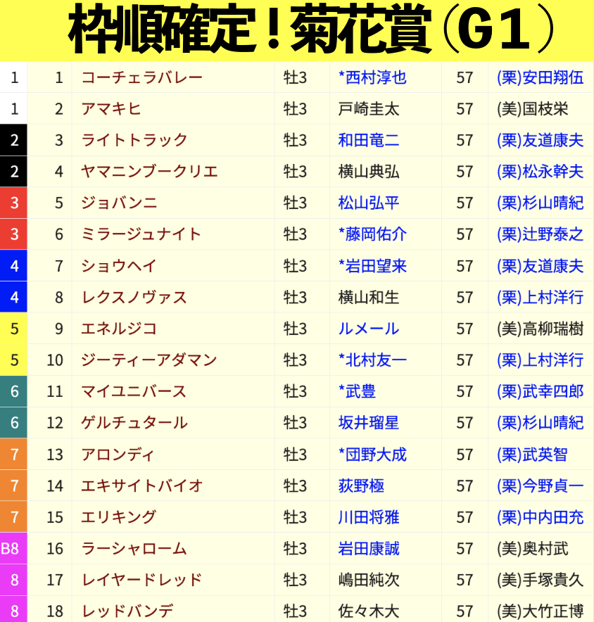そのあたりの詳しいお話は後半で。まずは、菊花賞を「有力馬」として迎えることになった、素晴らしき面々のご紹介から。