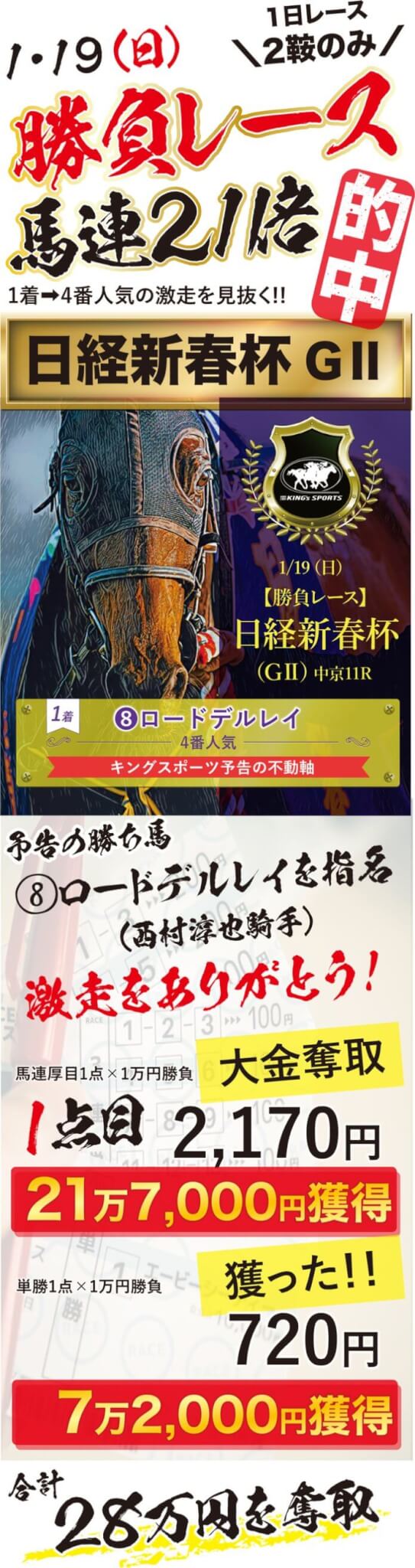 はじめまして!私たちは1981年の創業以来、40年間、予想一筋で勝負をして参りました「キングスポーツ」です。 当ページをご覧を頂き、ありがとうございます!!