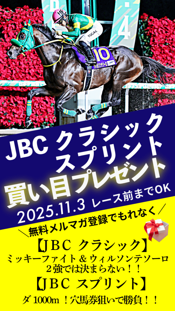 このコラムでは【JBCシリーズ 2025】についてご紹介しています。なお、【レディスC】の買い目は記事にて買い目公開中です。【JBCスプリント&JBCクラシック】の最終決断はメルマガ登録をお願いします。