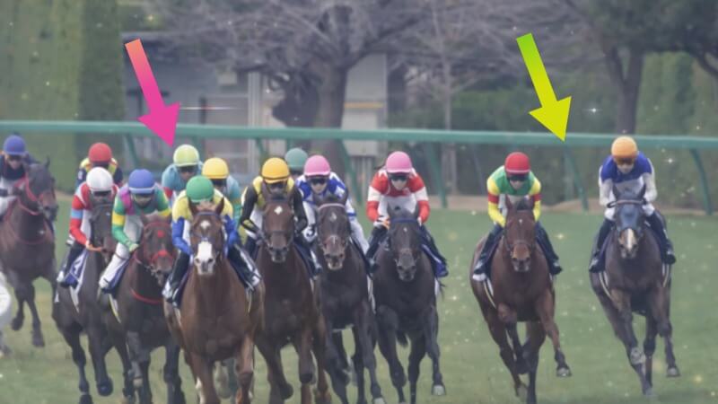 という馬への信頼が両馬のジョッキーにはあったのかもしれない。4角手前では、内と外に大きく分かれている。