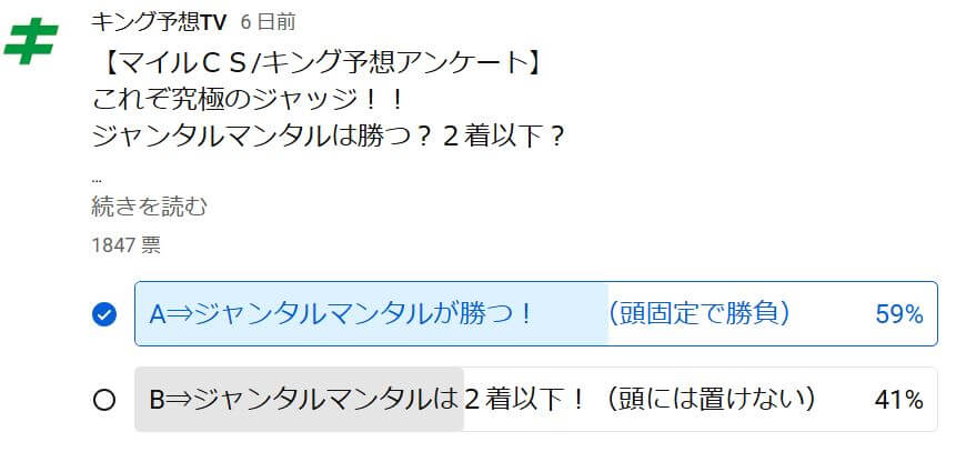 私たち自信も、当然高く評価していた一頭だったし、例えばレースの前に実施した「キング予想アンケート」でも、高い支持を得ていた。