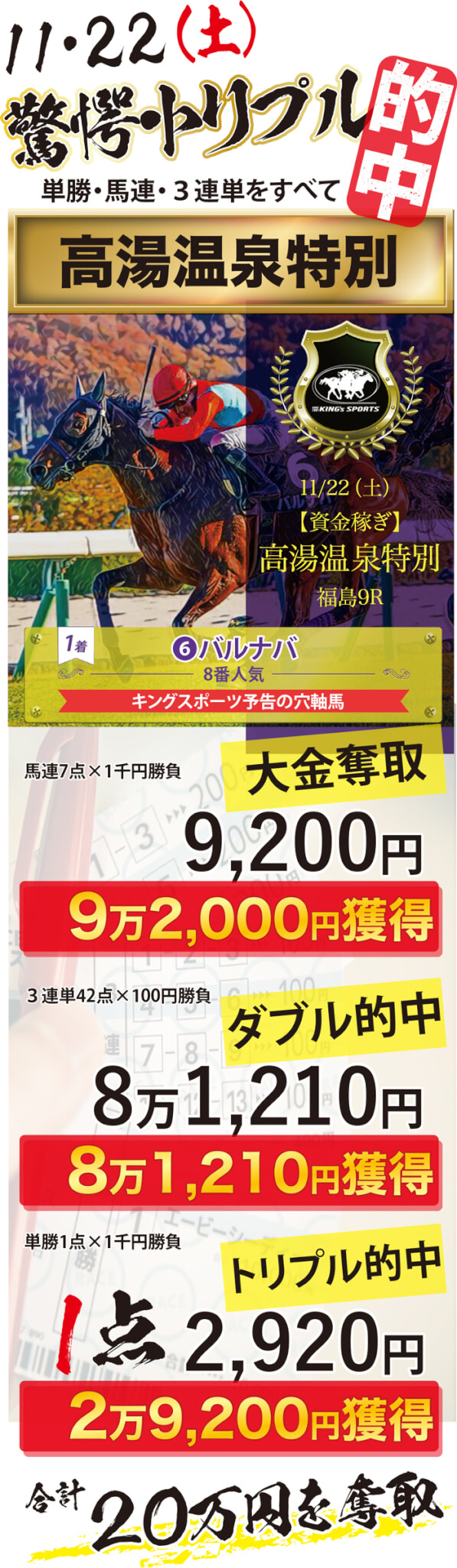 恐らく、このコラムの読者様の場合「せっかく良い馬を見つけたのに、全く儲けられなかった」という悔しい経験をしたことのある方がほとんどでしょう。その悔しさ、キングスポーツなら、味わわせたりしません!