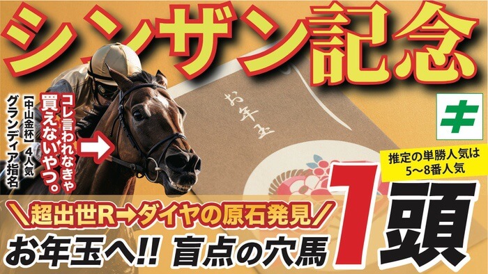 将来的には中距離でも活躍できそうなタイプこそ狙い目だし今回のメンバーの中にも非常に魅力的な馬がいた!シンザン記念以上に「穴馬券のチャンスが大きいレース」だと考えている。迷うことなく攻めの勝負を託したい。