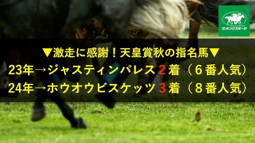 抜けた主役不在の大混戦。こんな時は、過去2年続けて「伏兵の激走馬」を見抜いてきた「天皇賞秋の勝ち方を知っている」キングSにお任せください。