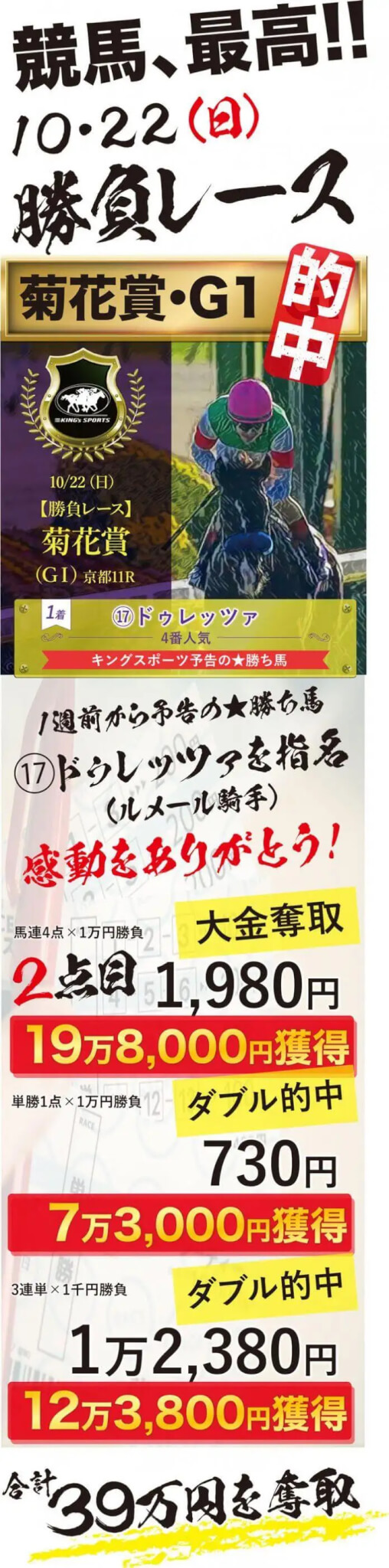 的中された方、報告待ってます✨ https://t.co/gHN040v9Z1 pic.twitter.com/HTNIUdzWtP— 競馬 キングスポーツ since1981 (@Kingnanews) October 18, 2025