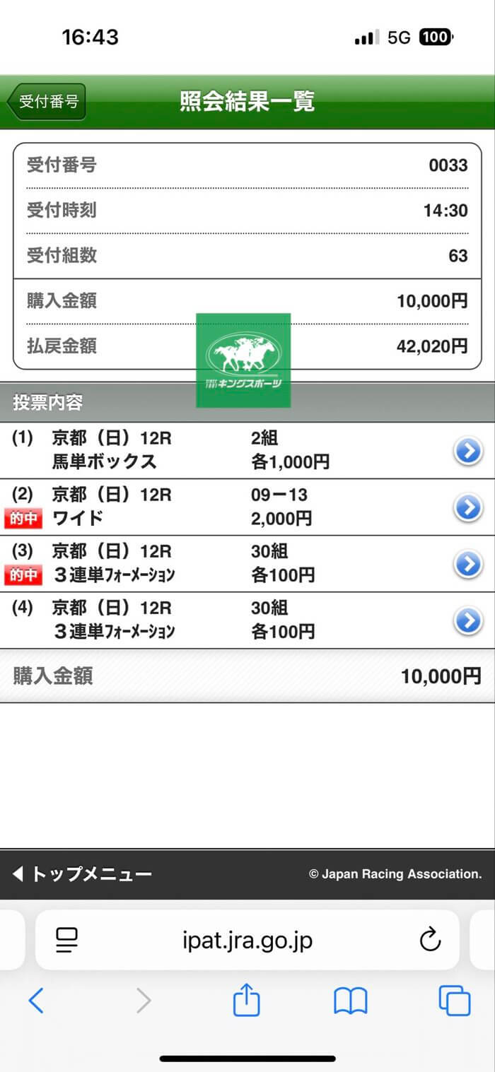 キングスポーツの指定買い目を参考に、実際に馬券を購入し、的中された方がいらっしゃいましたら、下記リンク先よりご報告をいただけると幸いです。