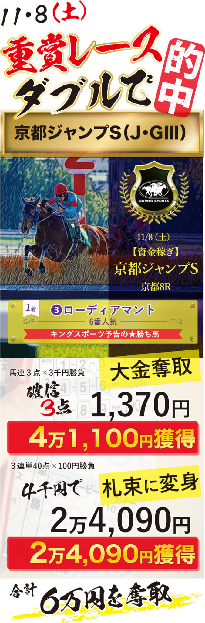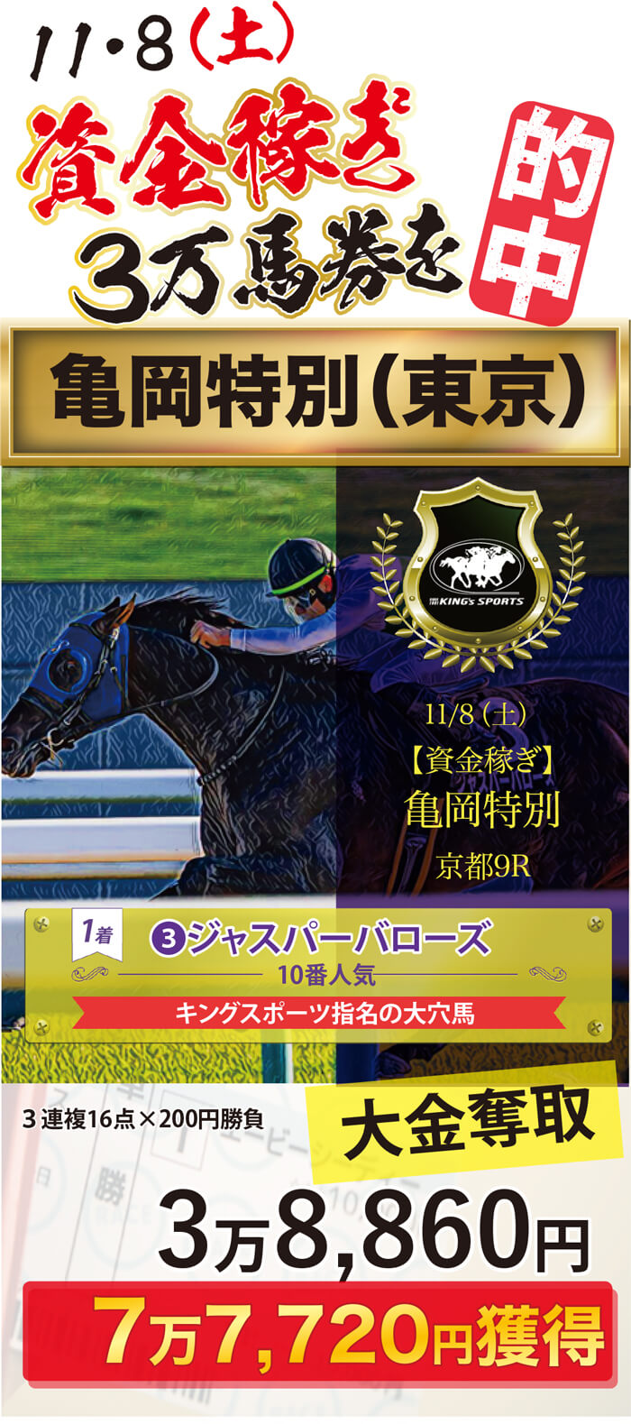 はじめまして!私たちは1981年の創業以来、40年間、予想一筋で勝負をして参りました「キングスポーツ」です。 当ページをご覧を頂き、ありがとうございます!!