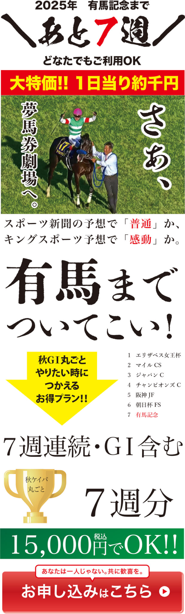 穴の予想家として40年以上に渡って業界を歩み続けてきた、キングスポーツのひとつの結論だと受け止めていただけると幸いです。