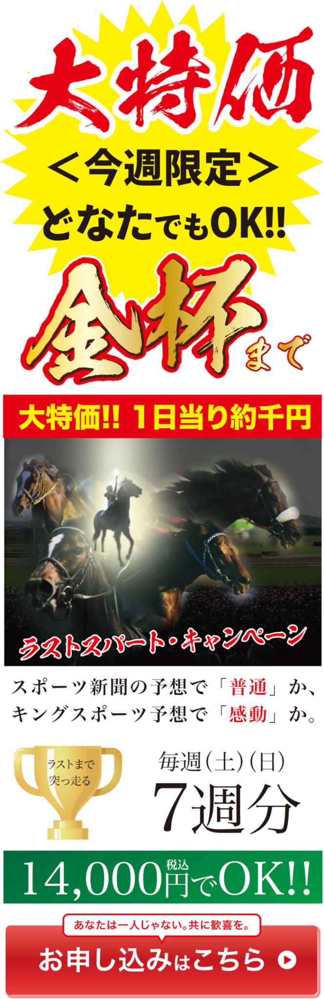 穴の予想家として40年以上に渡って業界を歩み続けてきた、キングスポーツのひとつの結論だと受け止めていただけると幸いです。