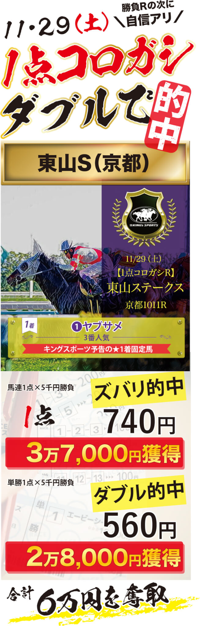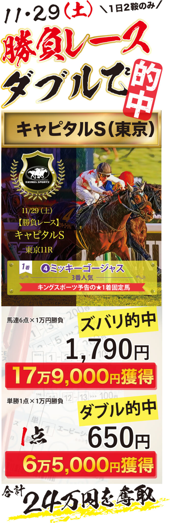そんな師走競馬に向けて、先週もキッチリ「勝負レースも勝ち、1点勝負も的中」
