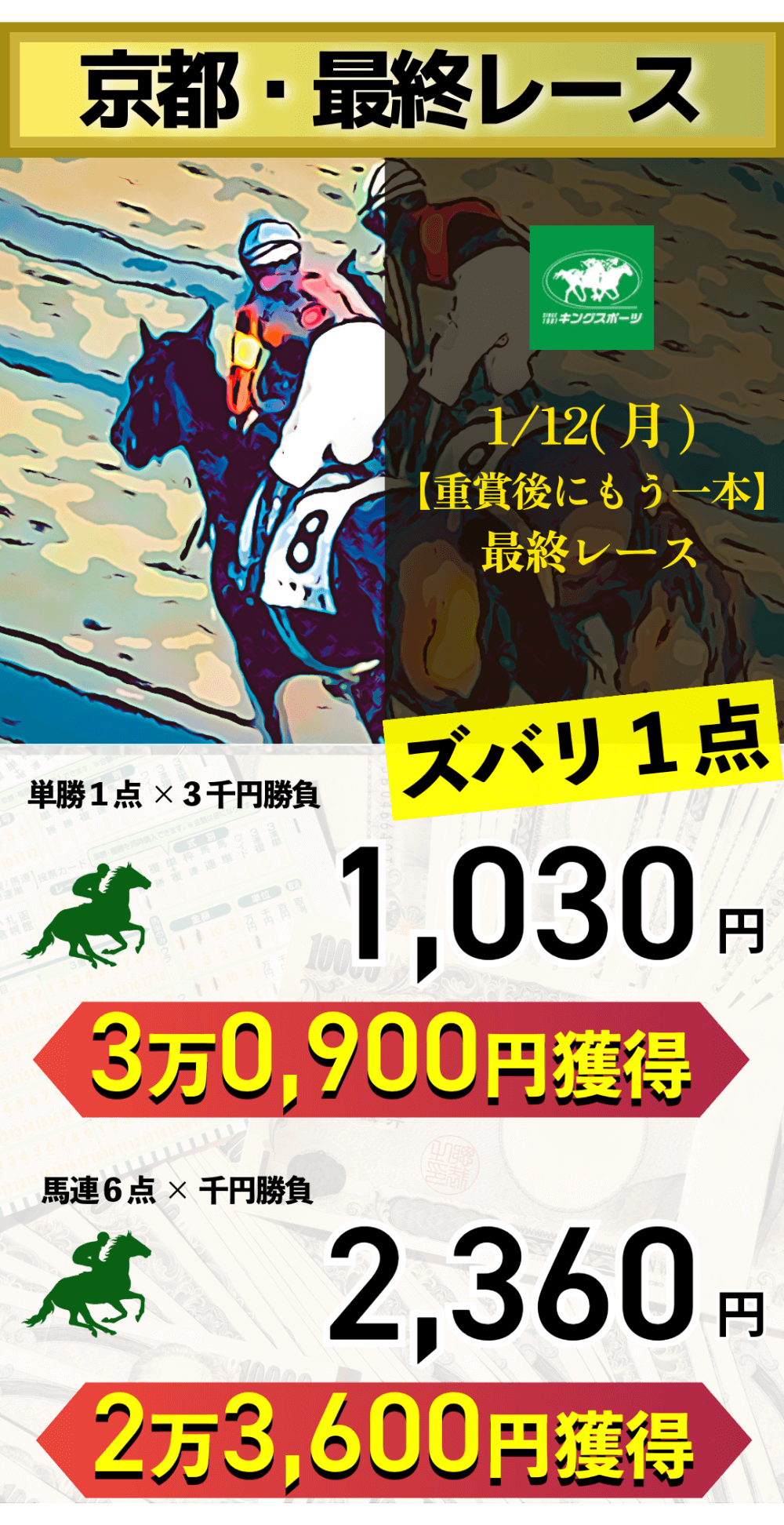 私たちが日頃から常に意識する「記憶に残る的中」を、新年一発目からお届けしました。
