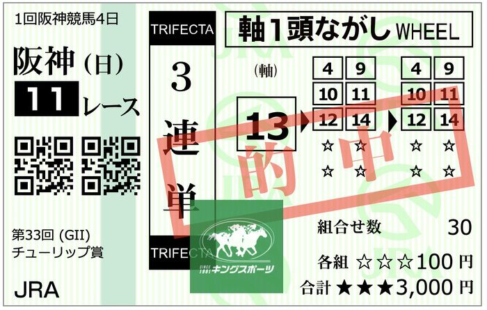 波乱のレースではトコトン攻めたり、一方で究極に絞り込むキングプラスワンを使ったり、レースごとの馬券選択のミスのなさが結果に結びついていると分析しております。