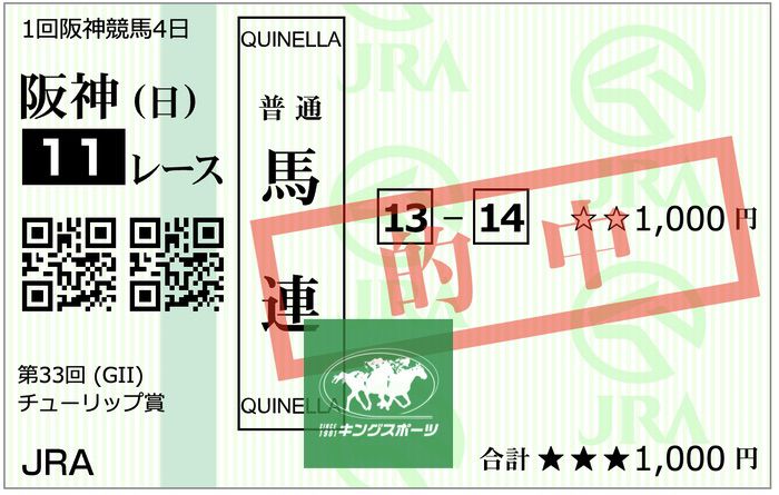 これにより、馬連大本線の1点目で2,960円&3連単30点で1万4,860円のダブル的中に成功。