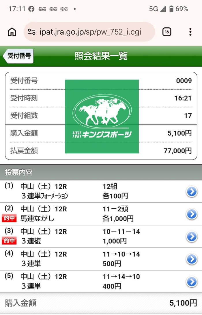 なんとキングスポーツ会員様が121万馬券を奪取!