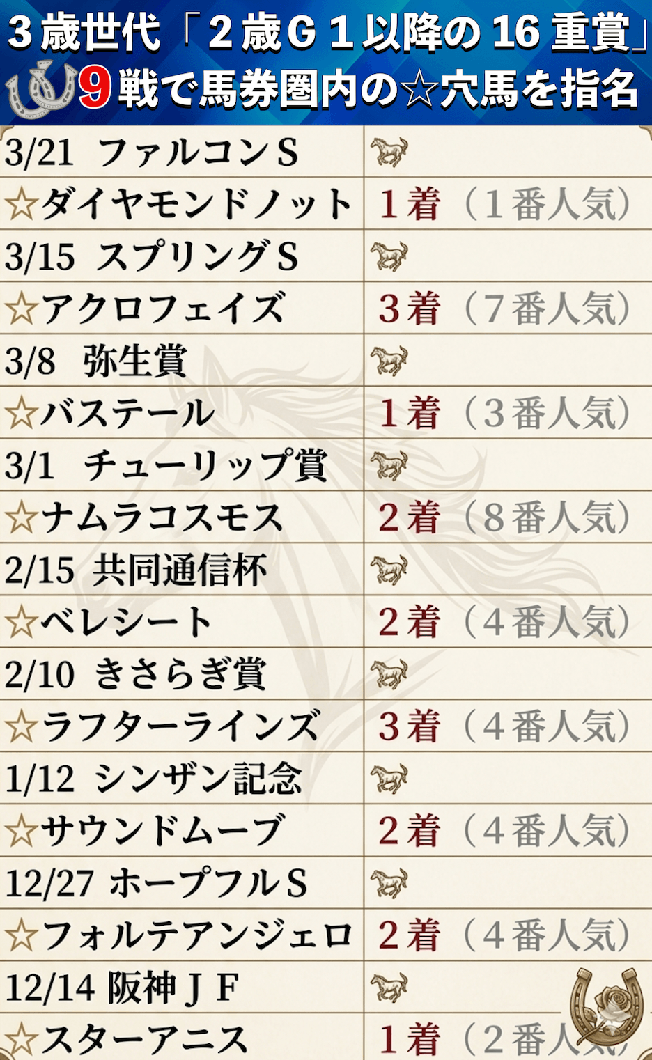 指名馬が続々激走!絶好調の3歳戦に自信あり!