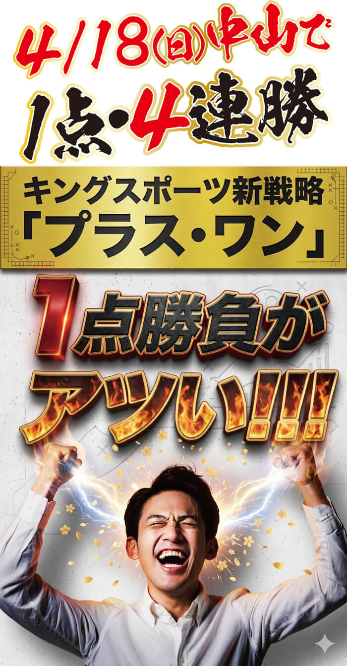 現在のキングスポーツの最大の武器である「キングプラスワン(1点勝負)」が炸裂しました。