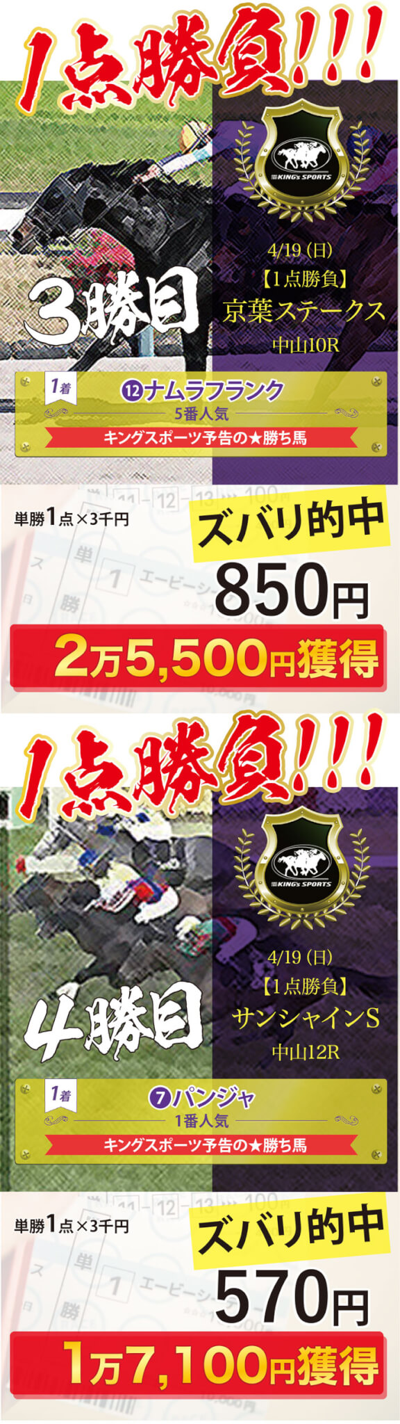 はじめまして!私たちは1981年の創業以来、40年間、予想一筋で勝負をして参りました「キングスポーツ」です。 当ページをご覧を頂き、ありがとうございます!!