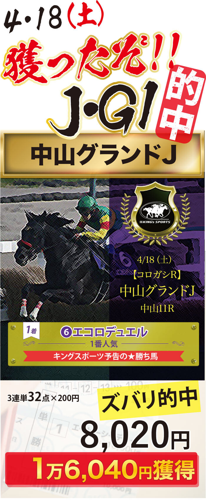 「勝利馬券の画像」は、コチラからお願いいたします。