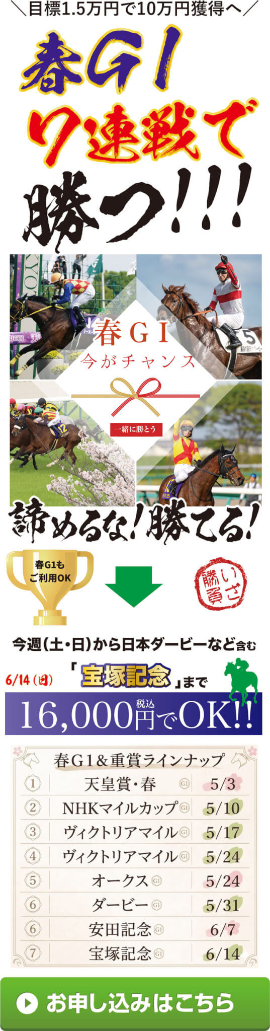そんな私たちが挑むのが、競馬ファンが最も楽しみにしているであろう春G1シーズン!今週から「7週連続G1」が始まります。