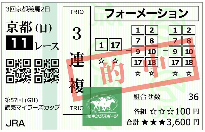 なんとキングスポーツ会員様が121万馬券を奪取!