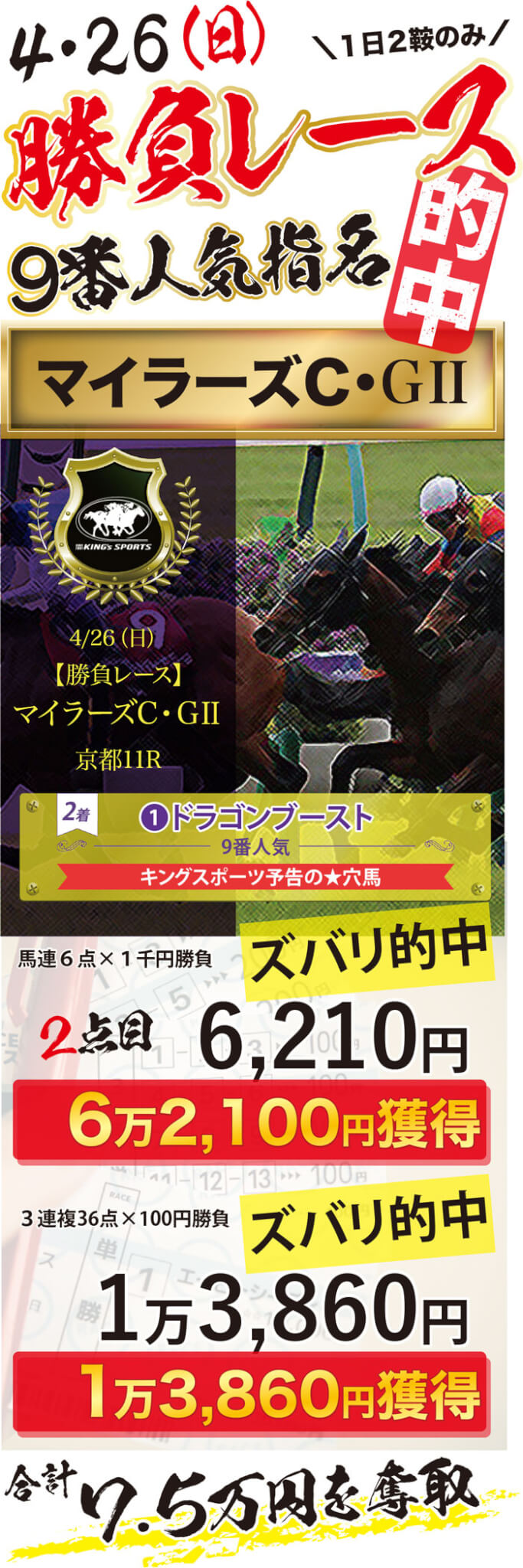 穴の予想家として40年以上に渡って業界を歩み続けてきた、キングスポーツのひとつの結論だと受け止めていただけると幸いです。
