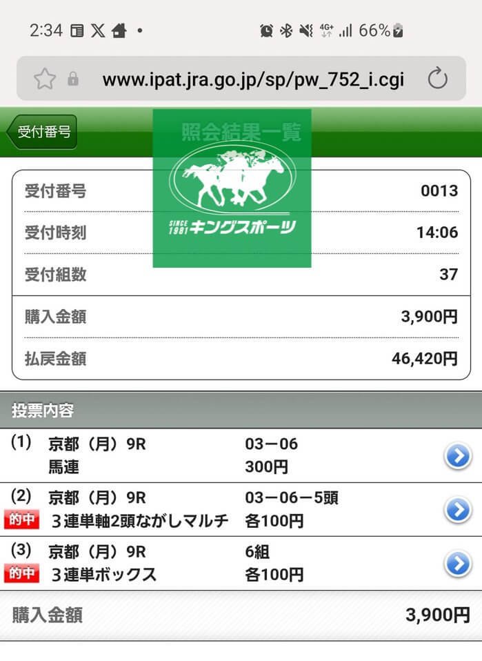 なんとキングスポーツ会員様が121万馬券を奪取!