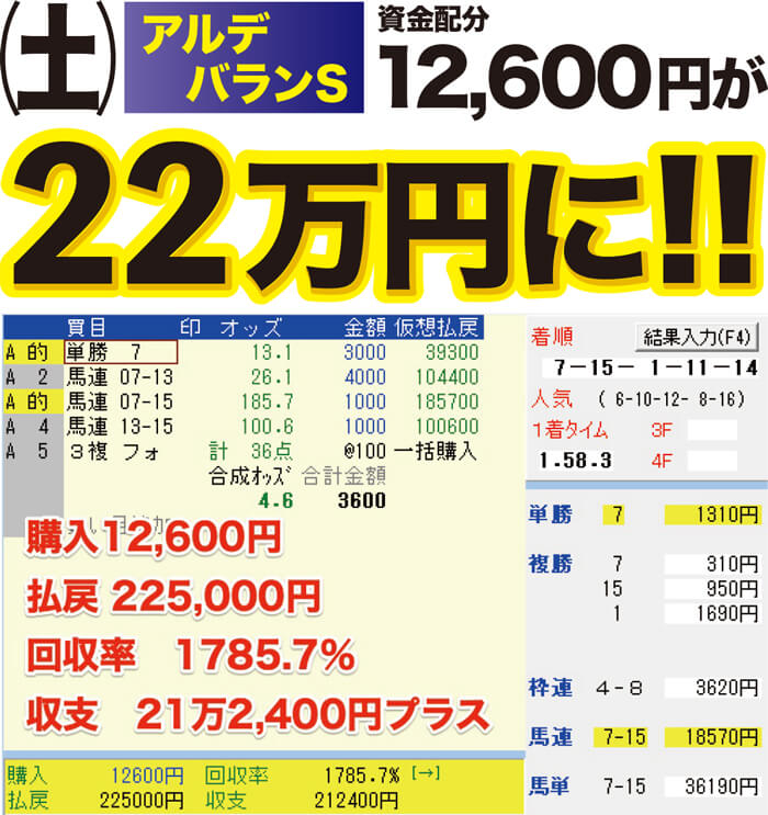 そこで、ひとつの例として、上でもご紹介しましたが、先週【根岸S】において、ご会員様から送っていただいた的中画像をご覧ください。